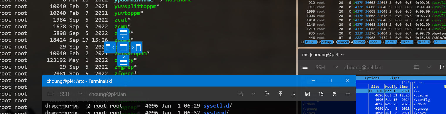 Unlike other terminal emulators where you can only see one terminal screen at a time, you can customize terminal screens in Terminalski like the editor panes in Microsoft Visual Studio; you can open multiple terminal screens and freely group or dock them.