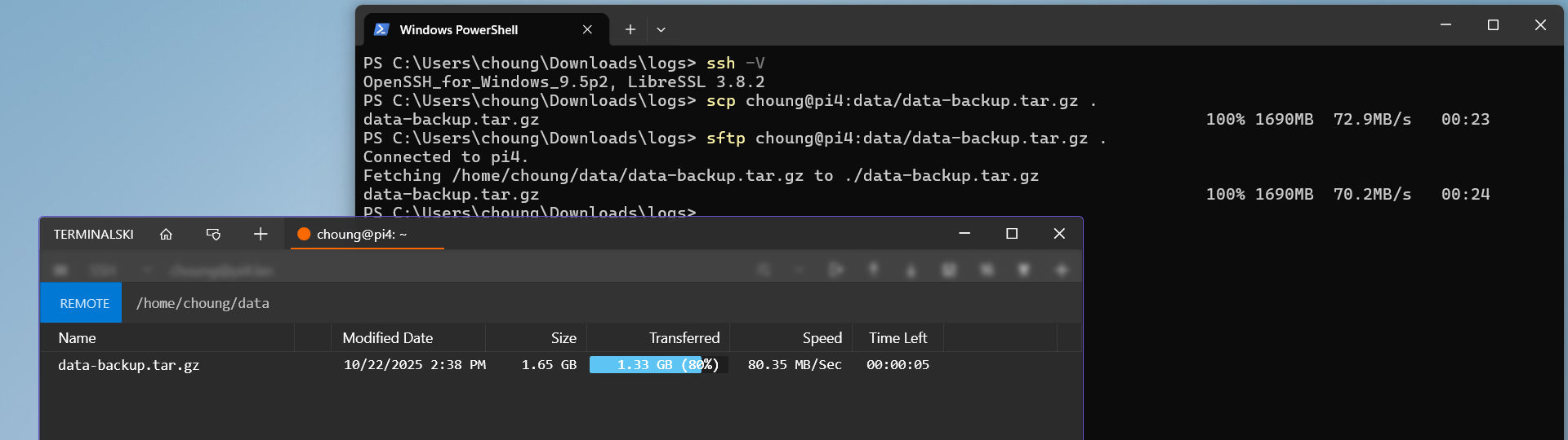 Need to upload files while connected to your server in SSH? Just drag-and-drop or copy-and-paste files from Windows File Explorer to the terminal screen you are working on! Terminalski can detect the remote folder you are in and upload your files to that folder automatically. For downloading files, press CTRL+PageDown and simply select the files you want to download.