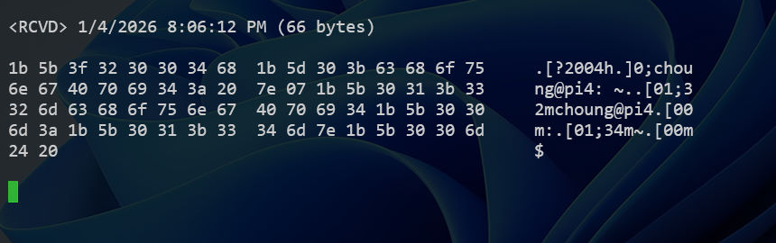 Want to check the raw data output from your server? Enable the Hex Mode and see the output in hexadecimal format; Terminalski prints out the raw data as it receives from your server including control characters and symbols. It should be handy when you are studying or debugging the communication protocol your server or device uses.