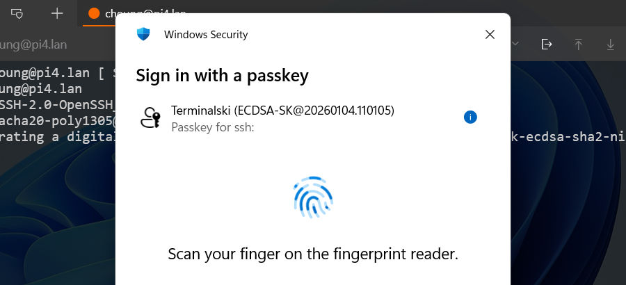 Try Terminalski! You can seamlessly SSH into your servers using the same fingerprint, face ID, PIN or whatever your computer has for Windows Hello. You don't have to remember or use long, random, mixed uppercase, lowercase, symbols and black magic numbers for your password to be secure. Simply use Terminalski with Windows Hello that utilizes all the security hardware features already built into your computer!